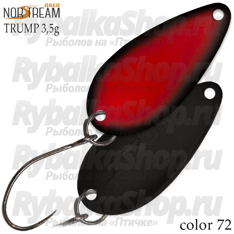Norstream Area Trump 3,5 г – Достаточно крупная и тяжелая блесна с размашистой и активной собственной игрой. Модель лучше всего проявляет себя по активной рыбе в верхних слоях. Проводка рекомендуется высокоскоростная, с быстрым вращением катушки. На такой скорости блесна не входит в штопор, напротив, игра ее становится очень размашистой и привлекательной издалека для активной форели. Иначе говоря, данная модель – «стартовая».
