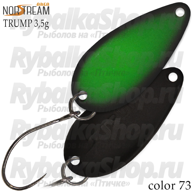 Norstream Area Trump 3,5 г – Достаточно крупная и тяжелая блесна с размашистой и активной собственной игрой. Модель лучше всего проявляет себя по активной рыбе в верхних слоях. Проводка рекомендуется высокоскоростная, с быстрым вращением катушки. На такой скорости блесна не входит в штопор, напротив, игра ее становится очень размашистой и привлекательной издалека для активной форели. Иначе говоря, данная модель – «стартовая».