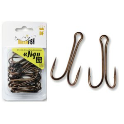 Flagman Double Hook Long Shank представляет собой неспаянный двойник, разведённый под углом в 60°. Модель отличается удлиненным цевьем. С этим крючком в спиннинговой ловле будет эффективен монтаж мягких приманок. Острое жало, расположенное в одной плоскости с цевьем, не даст уйти хищнику. Поддев этого крючка прямой. Высокоуглеродистая сталь делает двойник Gurza очень прочным. Темное покрытие из никеля не только позволяет скрыть крючок в воде, но и бережет его от ржавчины. В зависимости от габаритов рыб, на которых вы охотитесь, в ассортименте бренда можно подобрать крючок нужного размера.