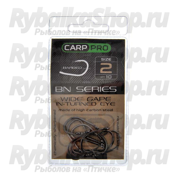 Carp Pro Black Nickel Wide Gape in-turned Eye — серия крючков с широким зевом и правильно подогнутым внутрь ушком. Такая универсальная форма придает этой серии мегазасекаемость и отличную фиксацию рыбы.