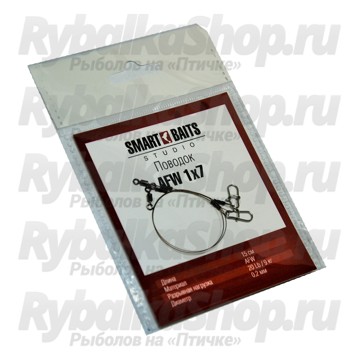 Проволока AFW - это один из лучших плетеных материалов на мировом рынке. Так же использована фурнитура этого производителя. Карабин на этом поводке имеет округлую форму, очень удобен для блесен, не имеющих заводного кольца.