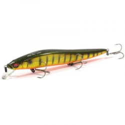 Серия воблеров-минноу Marine Gang от японского бренда Megabass проектировалась для морской рыбалки, но успешно подходит для ловли в пресных водоемах. Приманки имеют отличные полетные характеристики, которые обеспечивает фирменная система LBO. Дальность заброса увеличивается благодаря подвижному грузу, изменяющему центр тяжести. Груз двигается по специальному стержню, расположенному внутри корпуса. Огрузка двигается по принципу подшипника за счет множества мелких шариков. Стержень выполнен из материала с минимальным коэффициентом скольжения. При забросе груз смещается в хвостовую часть, а потом занимает исходное положение и фиксируется магнитом. В стационарном положении огрузка стабилизирует игру приманки на любых типах и скоростях проводки. Воблер Megabass Marine Gang - отличная приманка для ловли щуки, а также на нее можно ловить судака.