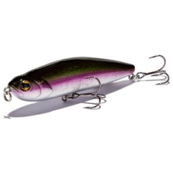 Приманка поможет обловить перспективные поросшие меляки, где любят прятаться щуки и окуни. Заглубление "0+" позволяет провести воблер, если есть всего несколько сантиметров чистой воды. Длина модели 6,3 см, масса 17,7 гр. У Megabass серии Noisy Cat Splat широкая лопатка установлена почти перпендикулярно горизонтальной оси корпуса. Огрузочные шарики расположены в отдельных камерах внизу брюшка. Приманка упористая. Двигается, сильно покачиваясь вправо-влево, создавая возмущения среды, которые приманят потенциальную добычу издали. Шарики издают шум. Пропеллер рисует на воде след, поднимая брызги. Голодный хищник в периоды активности точно не пропустит такую громкую, дразнящую приманку.