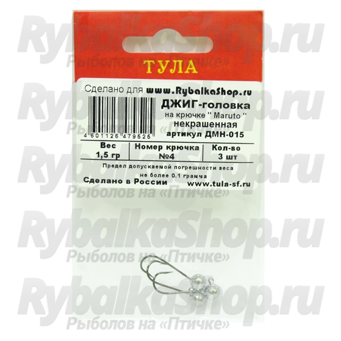 Джиг-головка, крючок Maruto некрашенная 1,5гр, крючок №2
