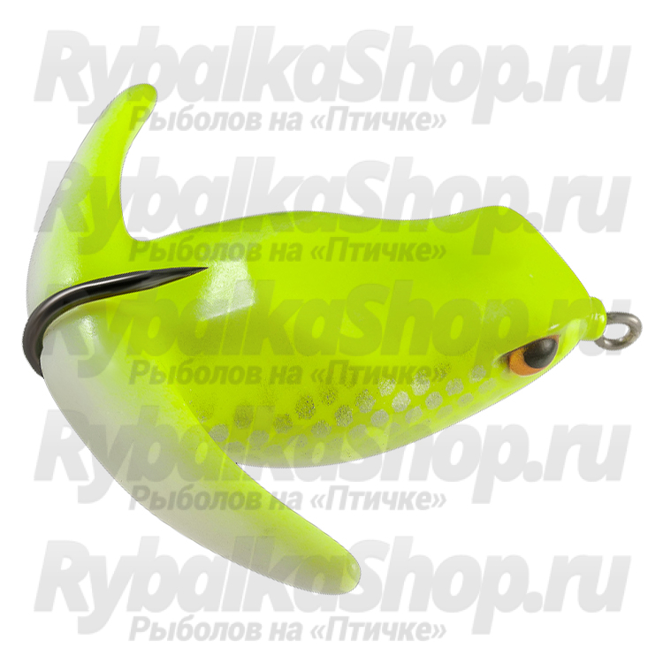 Поверхностная приманка в виде резиновой имитации лягушки, оснащен одним крючком. Применима для ловли вдоль стенок камыша и рогоза, в зарослях хвоща и ему подобных растений, среди полей кувшинки и рдеста. Целевой трофей в Европейской части страны – щука.