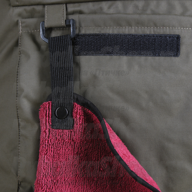 • правый двойной карман имеет под клапаном полукольцо для фиксации полотенца или других инструментов;