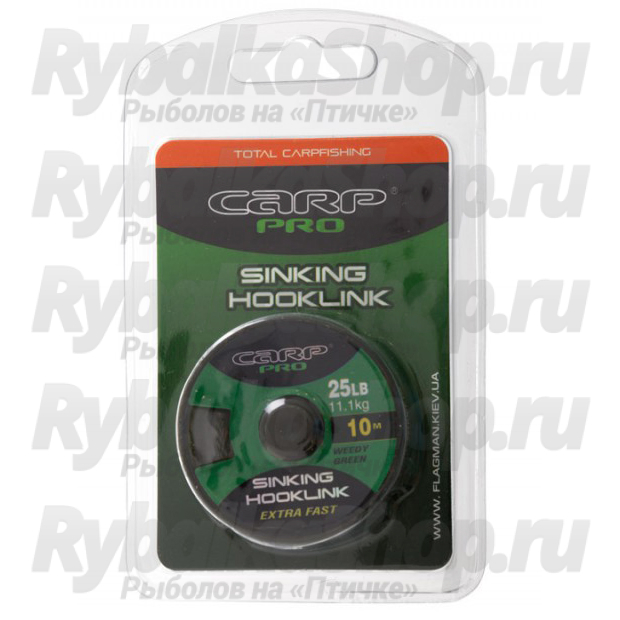 Поводковый, супер прочный, быстро тонущий,мягкий материал Carp Pro Gr. Brown Sinking, без оплетки. Используется для ловли на мягком типе дна. Возможно использование с кормушками типа "флет". Материал представлен в 2-х отлично маскирующих на дне цветах, болотисто-зеленом и коричневом.