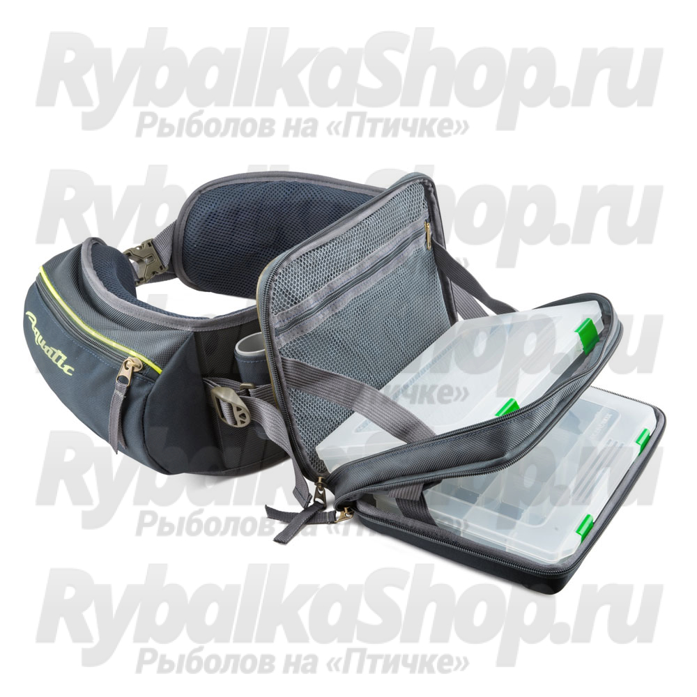 Aquatic ПР-04 - удобный рыболовный разгрузочный пояс, предназначенный для ходовой рыбалки или ловли взаброд. Два кармана пояса с дополнительными отделениями для аксессуаров оснащабтся моделями коробок FB-250 ( 255x188x39 мм) и FB-250 SH ( 255х188х20 мм). Сумка с коробками снимается и может использоваться отдельно. Верхний карман имеет жесткий формованный каркас. Задняя часть усилена пластиком. В поясе предусмотрен жесткий стакан для удилищ и два объемных кармана для аксессуаров. Лист эвапоры обеспечивает необходимую жесткость самому поясу, а для комфорта рыбака используется мягкий специальный поролон с низким коэффициентом памяти и водопоглощения. Длина жесткой части пояса 90 см, ширина 16 см.