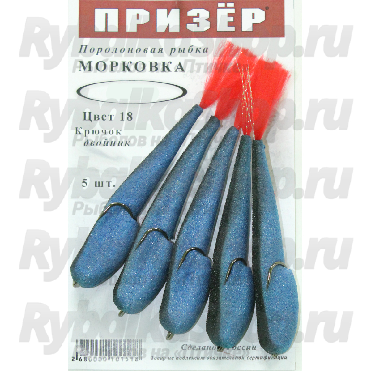 Призёр Поролоновая рыбка Морковка на двойнике 6,5см 18 синий