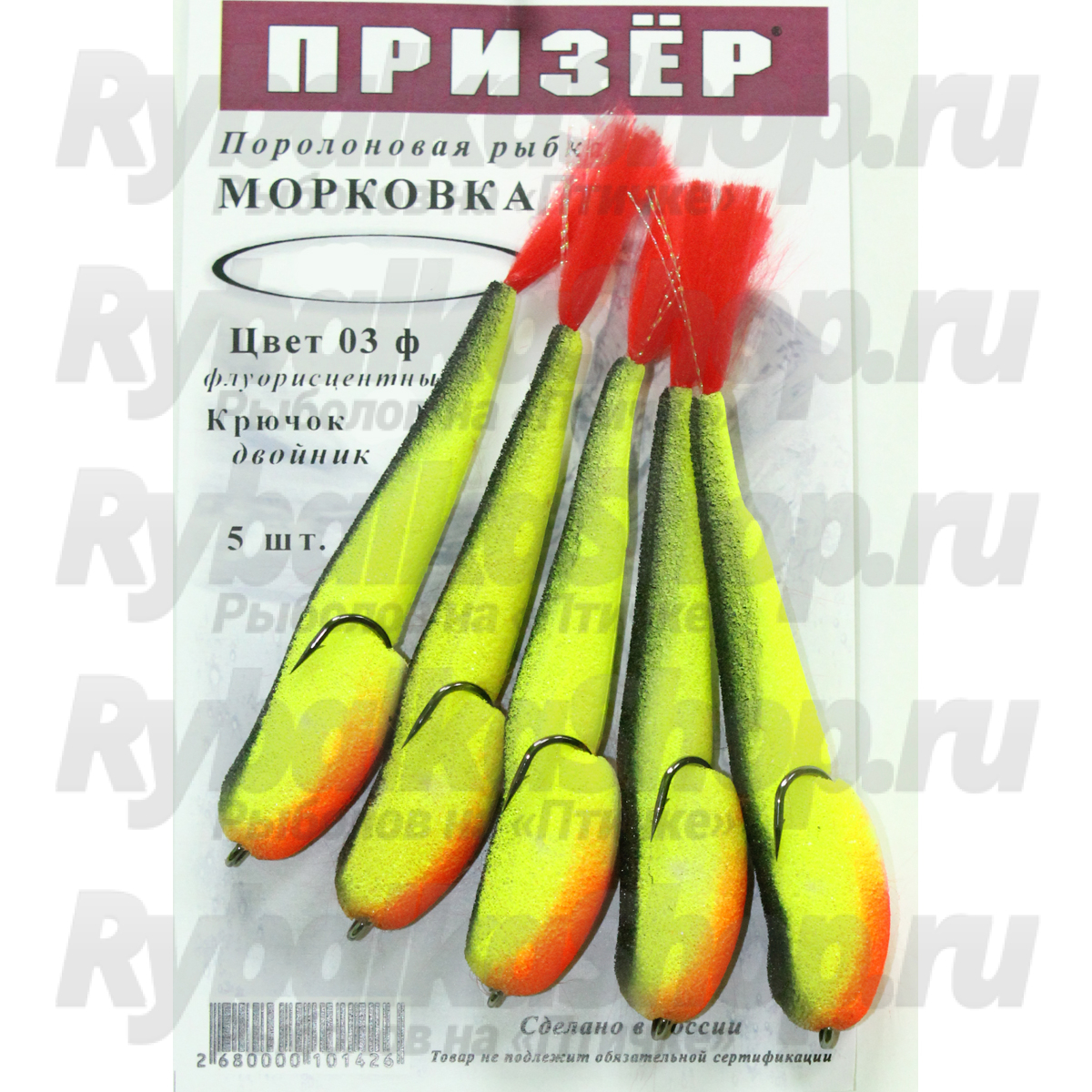 Поролоновая рыбка Призёр «Морковка» - классическая поролоновая рыбка «Морковка», знакомая практически каждому спиннингисту. Идеальная форма оттачивалась рыболовами не одно десятилетие. Мы же добавили изящное хвостовое оперение которое увеличило количество поклёвок. В ряде случаев данная рыбка значительно превосходит по уловистости любые силиконовые приманки самых известных фирм и становиться одной из основных приманок у рыболовов-спортсменов.