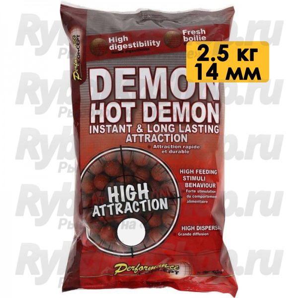 Компания Starbaits создала уникальную линейку карпового питания HOT DEMON - это бойлы, которые являются отличным полноценным кормом для рыбы. Это питание, включающее все необходимое - витамины, минералы, специи. В состав также входят такие необходимые ингредиенты, как масла и рыбная мука, способные растворяться в воде и источать аромат. Все это стимулирует аппетит карпа. Эти бойлы отлично показали себя в испытаниях на коммерческих водоемах, где карп избалован и завоевать его внимание трудно. Так, этот продукт действует даже в холодной воде, так что смело можете покупать его зимой (хотя позиционируется этот продукт как летний).
