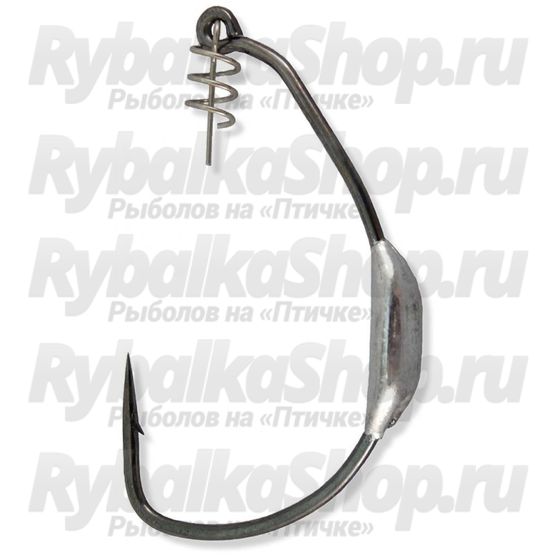 Подгруженный офсетный крючок Lucky John Predator LJH357 со спиральным креплением. Дополнительная подгруздка крючка желательна  при ловле среди прибрежных зарослей, так как уменьшает возможность зацепа за водную растительность.