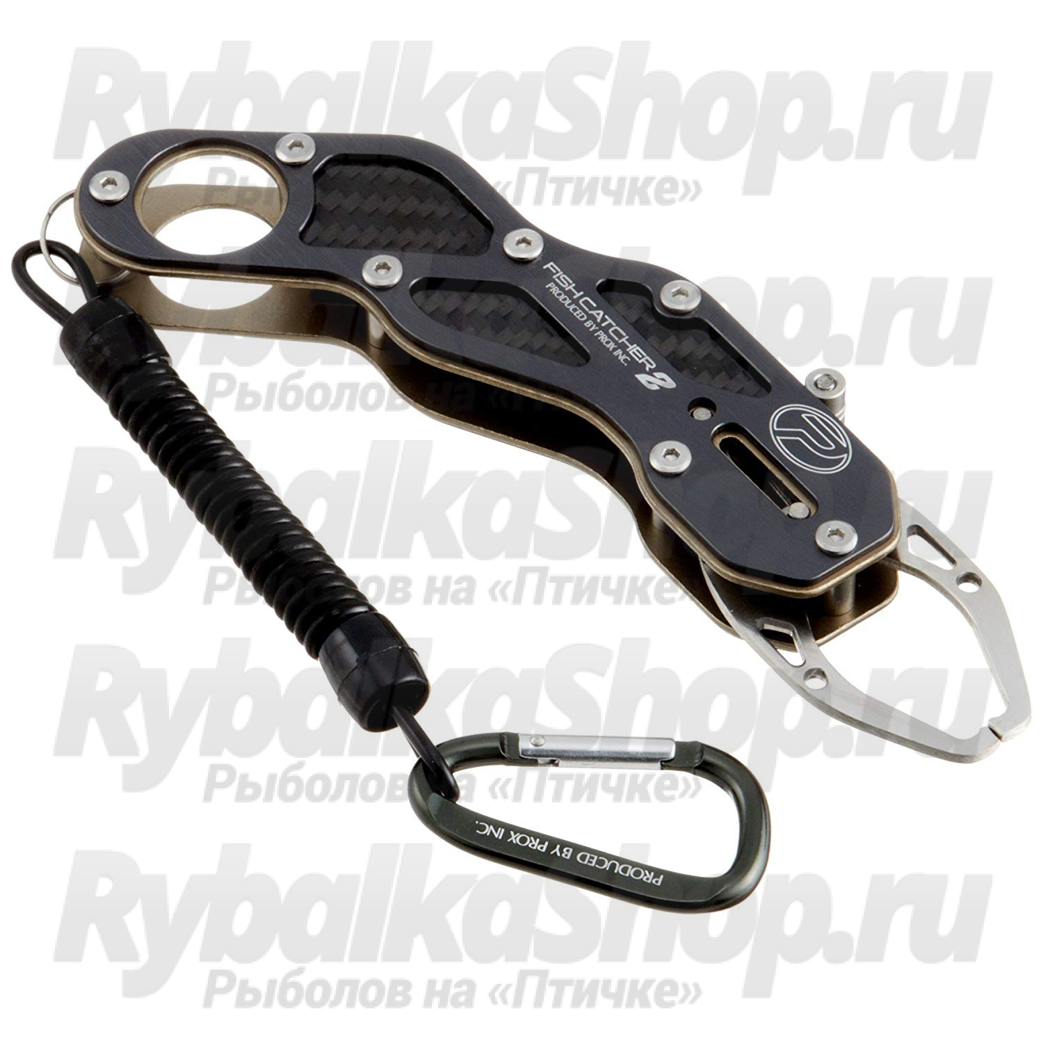Prox Fish Catcher 2 – это изогнутый, напоминающий пистолет, металлический захват для рыбы, который заменит подхват при ситуациях, когда носить его с собой невозможно, а так же сохранит Ваши руки от порезов щуками и наколов судаков. Рукоять имеет удобное расположение для руки, становясь, как бы продолжением ее. Как и в Prox Fish Catcher Mini, есть отверстие для пальца. Такой инструмент обязательно имеет страховочную систему, в которую входит небольшой карабин и пружина. Благодаря такой системе Вы никогда не потеряете липгрип. Размер составляет немного более 15 см и вес 95 грамм. Одним движением клавиши захват разжимается, а при отпускание – зажимается. Надежный металлический захват способен удержать достаточно крупную рыбу и может быть использован, как для речной, так и для морской ловли. Максимальное удобство будет при использовании в лодке или при ловле стоя в воде, когда до рыбы удобно дотянуться рукой.