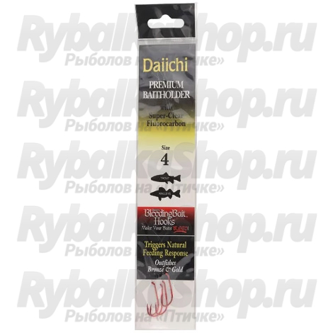 Daiichi Premium Baitholder Red - крючки с флюорокарбоновым поводком 18 см. Идеально подходят для ловли на силиконовые приманки, а также живых червей.