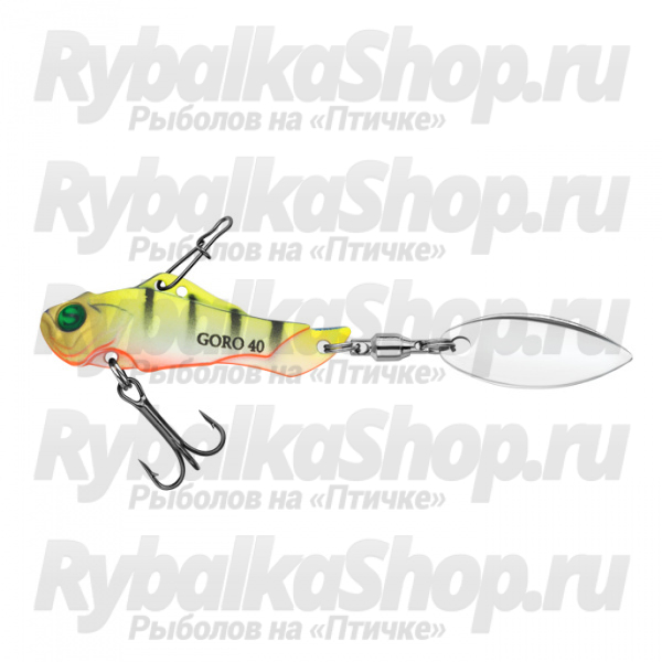 Sprut Goro 40 – классический тейлспиннер, имеющий широкую лобовую часть и узкий лепесток на хвосте. При проводке приманка переваливается из стороны в сторону. Мощные вибрации во всех проекциях и гидроакустический эффект от лепестка эффективно привлекают внимание хищника. При смене лепестка на тройник получается раттлин, который эффективно применять при отвесном блеснении. Данная приманка будет интересна любителям экспериментов с анимацией. Тейлспиннер отличается уловистостью и универсальностью применения.