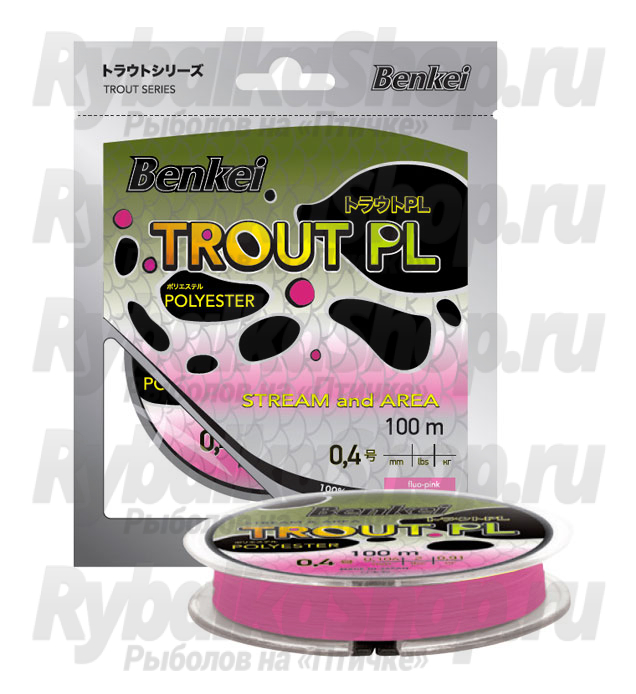 Benkei Trout PL – монофильная леска из полиэстера, предназначенная для ловли форели. Практически нулевая растяжимость обеспечивает прекрасную чувствительность. Высокая абразивная устойчивость позволяет уверенно ловить форель в камнях или среди ракушек. Яркая флуоресцентная расцветка позволяет визуально контролировать проводку. Леска отлично подойдет как для ловли дикой форели в реках, так и для ловли прудовой форели.