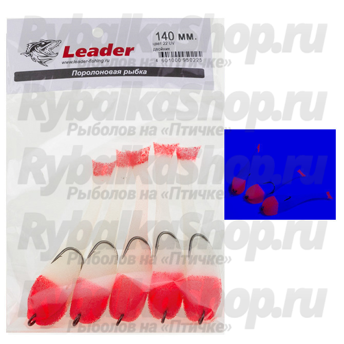 Рыбка поролоновая Leader оснащенная на двойнике 140 мм. Цвет 22 UV упак. 5 шт.