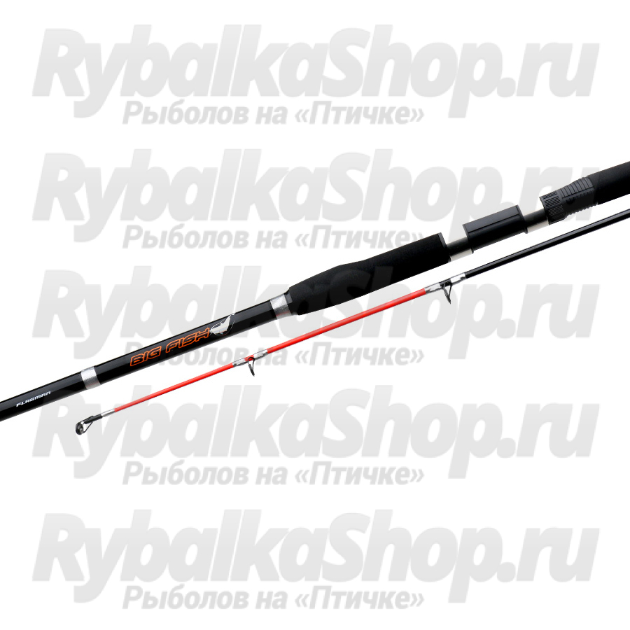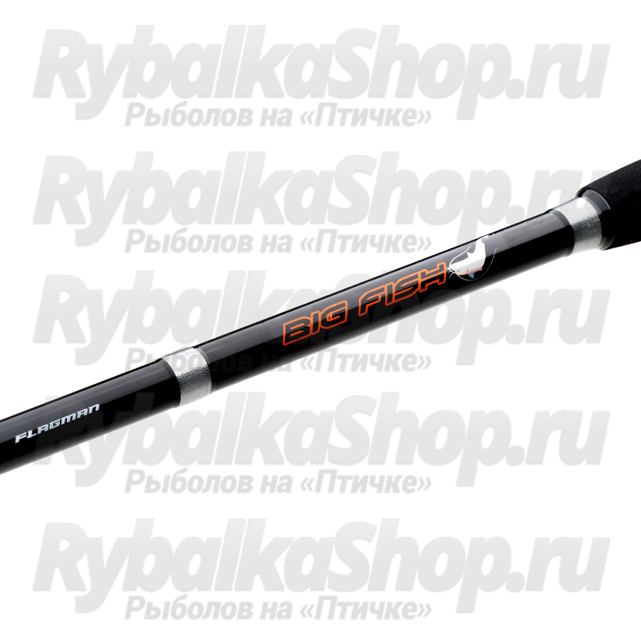 Часто расставленные «трехлапые» пропускные кольца и универсальный катушкодержатель позволяют использовать как безынерционные, так и мультипликаторные катушки. Рукоять с EVA покрытием и мощный «грибок» для упора в пояс позволят удержать удилище Flagman BigFish и выиграть борьбу с норовистым хищником. Рукоять достаточно длинная — это дает возможность перехватывать ее перед катушкой, что просто необходимо при силовом вываживании. Яркий кончик вершинки поможет визуально легче уловить момент поклевки.