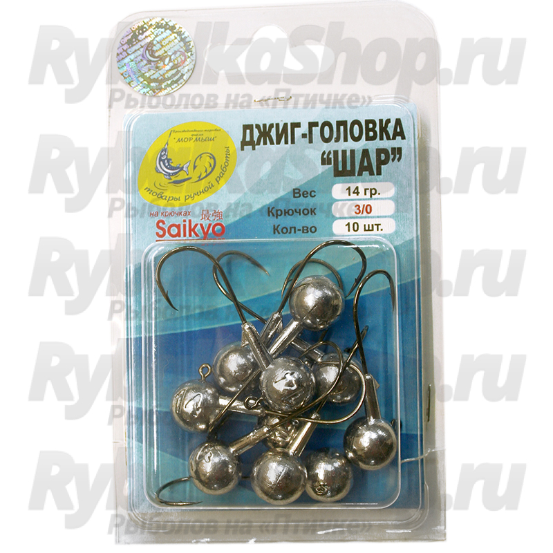 Форма головки – шар, это лучший вариант как для работы приманки, так и для результативности всей ловли, который идеально подходит под все типы силиконовых приманок. Для литья джиг-головки использован крючок №3/0, вес свинцовой части - от 3 до 18 грамм.