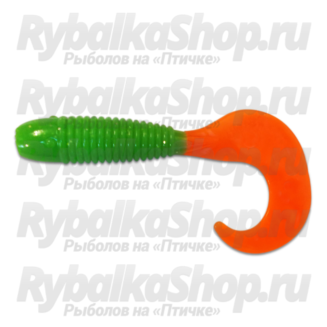 Силиконовая приманка Mann's Lucky 80 цв. ярко-зеленый с огнен хв, упак ( 4 шт). Lucky80_43