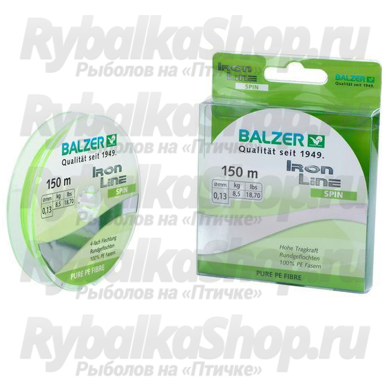 Новый 4 жильный шнур от немецкой компании Balzer.  Серия шнуров Balzer Iron Line на протяжении многих лет является стандартом качества среди плетенок. Новый четырехжильный Iron Line получил множество усовершенствований. Более круглое сечение, мягкая и гладкая поверхность способствуют увеличению дальности заброса и бесшумному прохождению шнура через кольца. Шнур имеет минимальную растяжимость и высокую абразивостойкость.