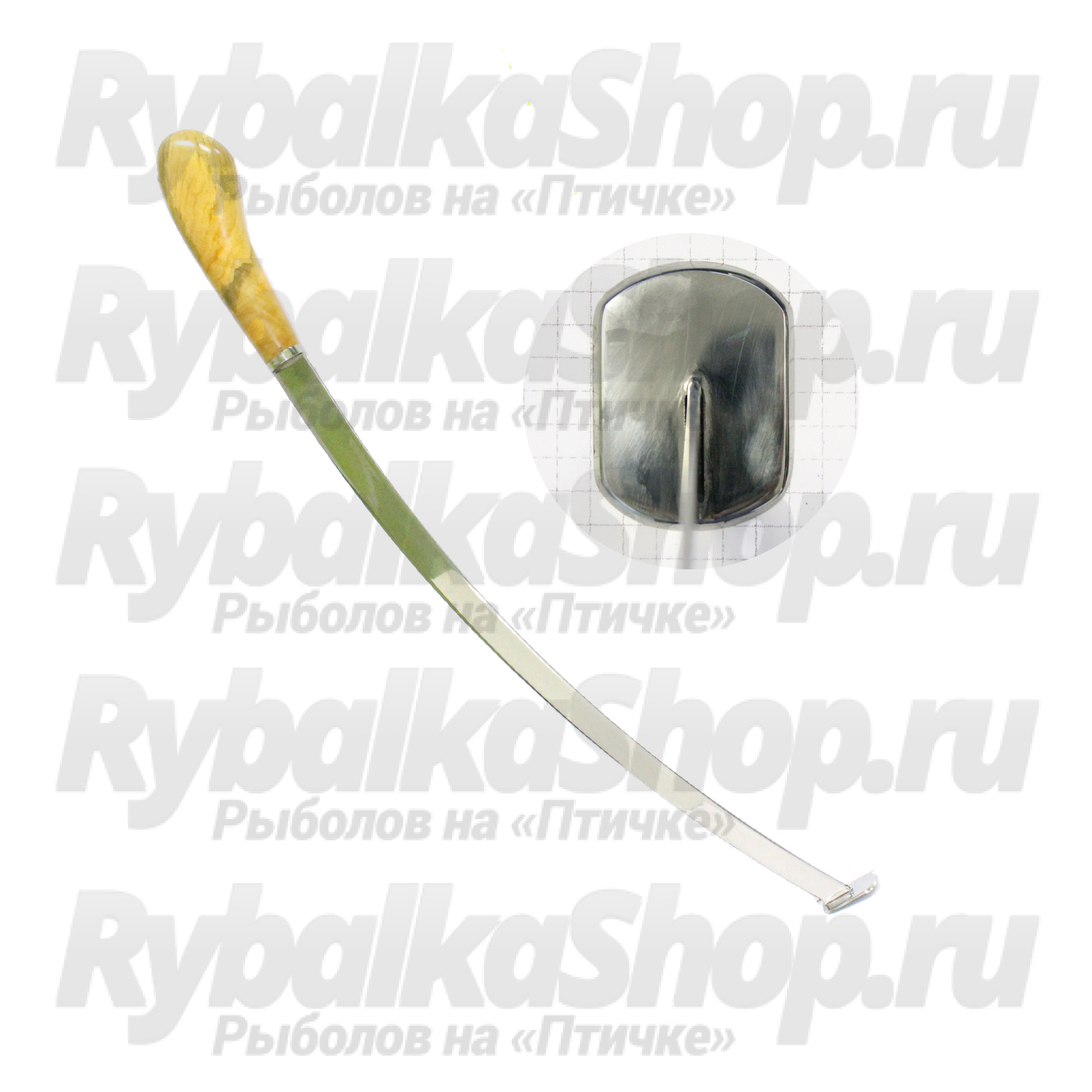 Ручка квока очень удобна и не скользит в мокрой руке. Она имеет оптимальную длину, чтобы сидящему в лодке рыбаку было удобно квочить, не нагибаясь и не испытывая большой нагрузки.