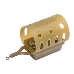 Кормушка изготовлена из высокотехнологичного ударопрочного пластика по концепции "in-line" (леска пропускается непосредственно через тело кормушки). В верхней части кормушки установлен силиконовый наконечник, предохраняющий леску от перетирания. В нижней части жестко фиксируется съемный пластиковый переходник с вертлюжком для крепления поводка. Выпускается в одном размере (standart) и трех вариантах по массе: 40, 60 и 80 грамм.
