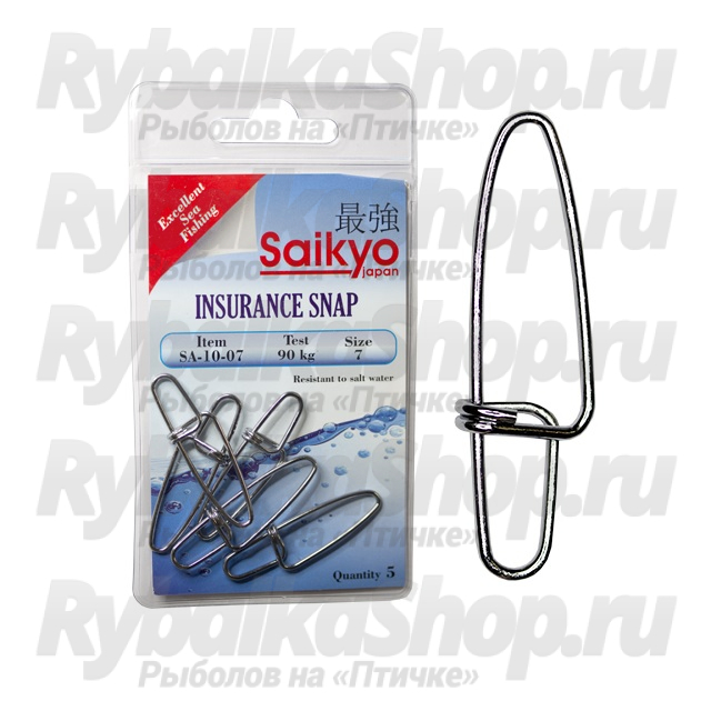 Морские застежки Saikyo SA-10 изготовлены из нержавеющей легированной стали, хромированное покрытие которой защищает их от коррозии, возникающей при частом использовании оснастки в соленой воде. Застежка Incurance Snap относится к типу карабинов, которые позволяют за считанные секунды сменить приманку.