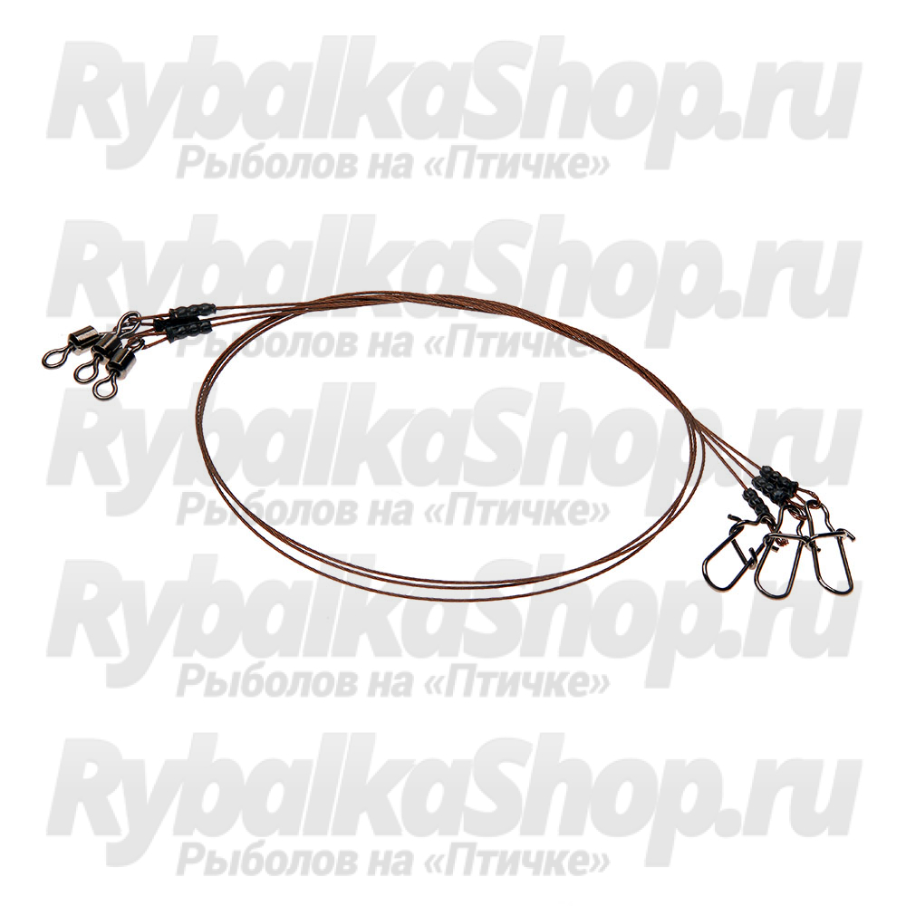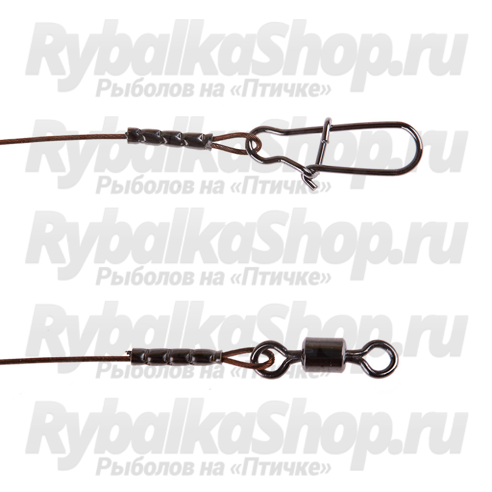 Плетение поводкового материала 7х7 из очень тонких нитей, изготовленных из специальной нержавеющей стали. Материал имеет непревзойденные характеристики мягкости при изгибании, благодаря чему позволяет вашей приманке вести себя более свободно и натурально.