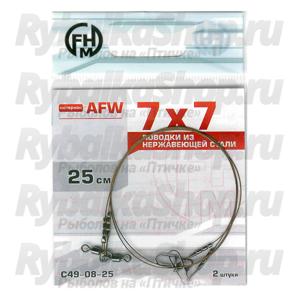 Поводок из 49 (7×7) нитей гораздо мягче, чем из 7 нитей, что позволяет проводить анимацию легких приманок. Как и вся продукция FHM, перед упаковкой поводки проверяется вместе с фурнитурой под нагрузкой не менее заявленного теста.