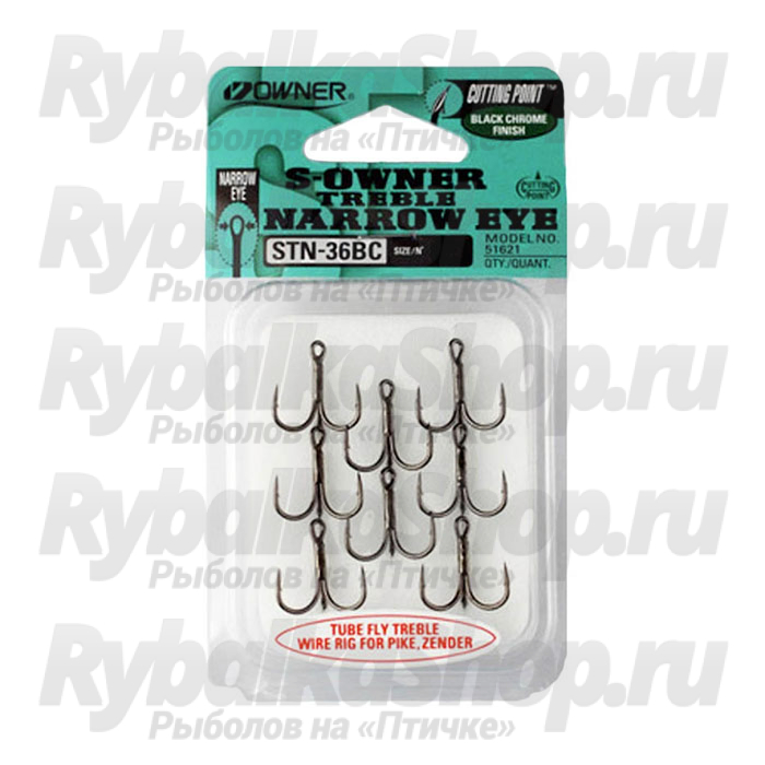 Owner STN-36BC — серия тройников, специально разработанная для оснащения мушек, связанных на трубках. Причем сам производитель позиционирует их как наиболее подходящие для мушек-трубок, используемых для ловли «зубастых» хищников — щуки и судака. Класс мощности — 3, кованый поддев и «фирменная» заточка жала Cutting Point® обеспечивают не только беспрецедентную проникающую способность, но и возможность достойного противостояния самым сильным трофеям. Помимо «профильного» применения тройника — с мушками, связанными на трубках, STN-36BC отлично подходит для оснащения приманок из мягкого пластика. В частности, он оптимален как тройник-«стингер», когда дополнительный крючок на поводке продевается сквозь корпус приманки. Благодаря компактному, узкому ушку, приманке наносятся минимальные повреждения.