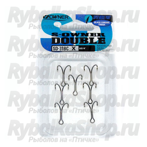 Owner SD-31BC(36BC) 5632 - популярная модель двойного крючка, отличающаяся повышенной остротой, зацепистостью и прочностью. Крючки имеют круглый загиб, цевье средней длины и фирменную заточку. Данная модель подойдет для ловли на жерлицы, кружки или на живца, а так же для оснащения джиговых приманок – твистеров, виброхвостов и поролона.