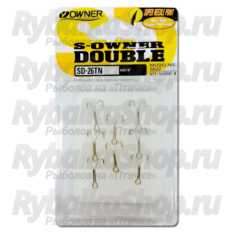 Owner SD-26TN 5622 – серия деликатных двойных крючков из тонкой, но упругой проволоки. Крючки имеют округлый загиб, цевье средней длины и фирменную заточку Super Needle Point. Данная модель подойдет для ловли на жерлицы, кружки или на живца, а так же для оснащения приманок: небольших блесен, воблеров. Owner SD-26TN 5622 – универсальный крючок для «лайт» оснасток.