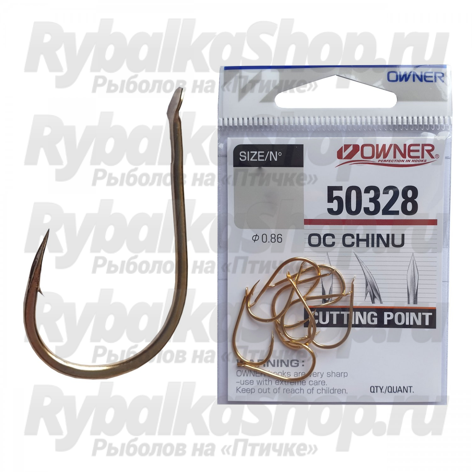 Чуть отогнутое в сторону цевья острейшее жало крючков Owner 50328 Cut Chinu способно легко пробить пасть любой рыбы даже при слабой подсечке. Нередко случается и самоподсечка. Рекомендуются для ловли крупной рыбы в основном на крупные насадки донными снастями. Круглый загиб, нормальной длины цевье, лопаточка для привязывания.