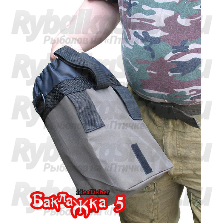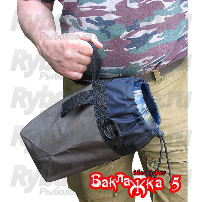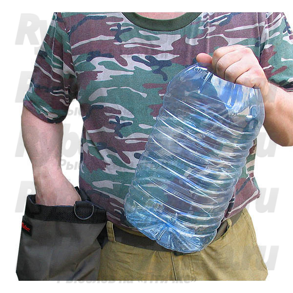 Как приготовить бутыль для сумки ideaFisher Баклажка 5: берется обычная пластиковая бутыль на 5 л.,горловина отрезается до желаемой высоты (главное, чтобы могла войти рука с рыбой или грибом), вставляется в сумку, а при необходимости горловина сумки утягивается регулируемым шнурком.