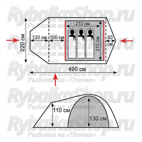 - Входы в спальное отделение продублированы высококачественной москитной сеткой, способной защитить даже от самой мелкой мошки.