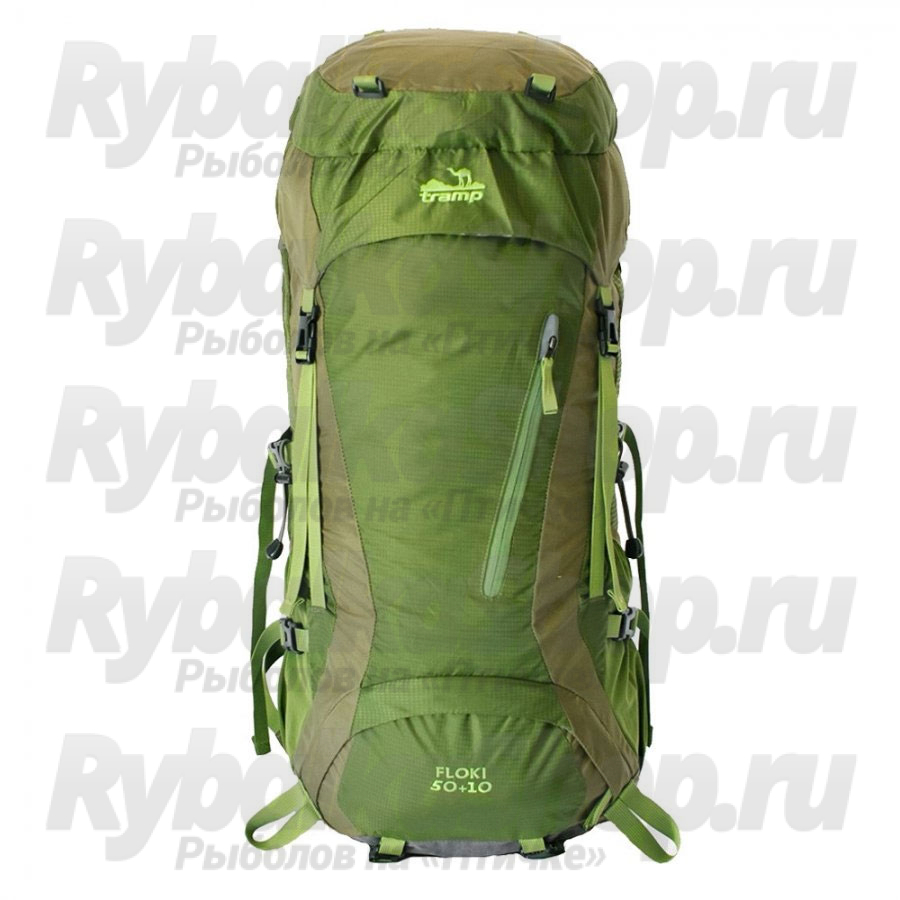 Tramp Floki 50+10 – туристический рюкзак объемом 60 литров. Рюкзак изготовлен из нейлона 420D+600D. Технология Ripstop обеспечивает ткани высокие износоустойчивые свойства и прочность на разрыв. Подвесная ABS система обеспечивает комфортное ношение рюкзака людьми разного роста. Два внутренних отделения с внутренней перегородкой на молнии отличаются вместительностью и удобством доступа. В клапане рюкзака предусмотрены 2 кармана. Анатомические плечевые ремни и мягкий пояс с дополнительными карманами эффективно распределяют нагрузку. В конструкции рюкзака используется качественная фурнитура YKK/YNS.