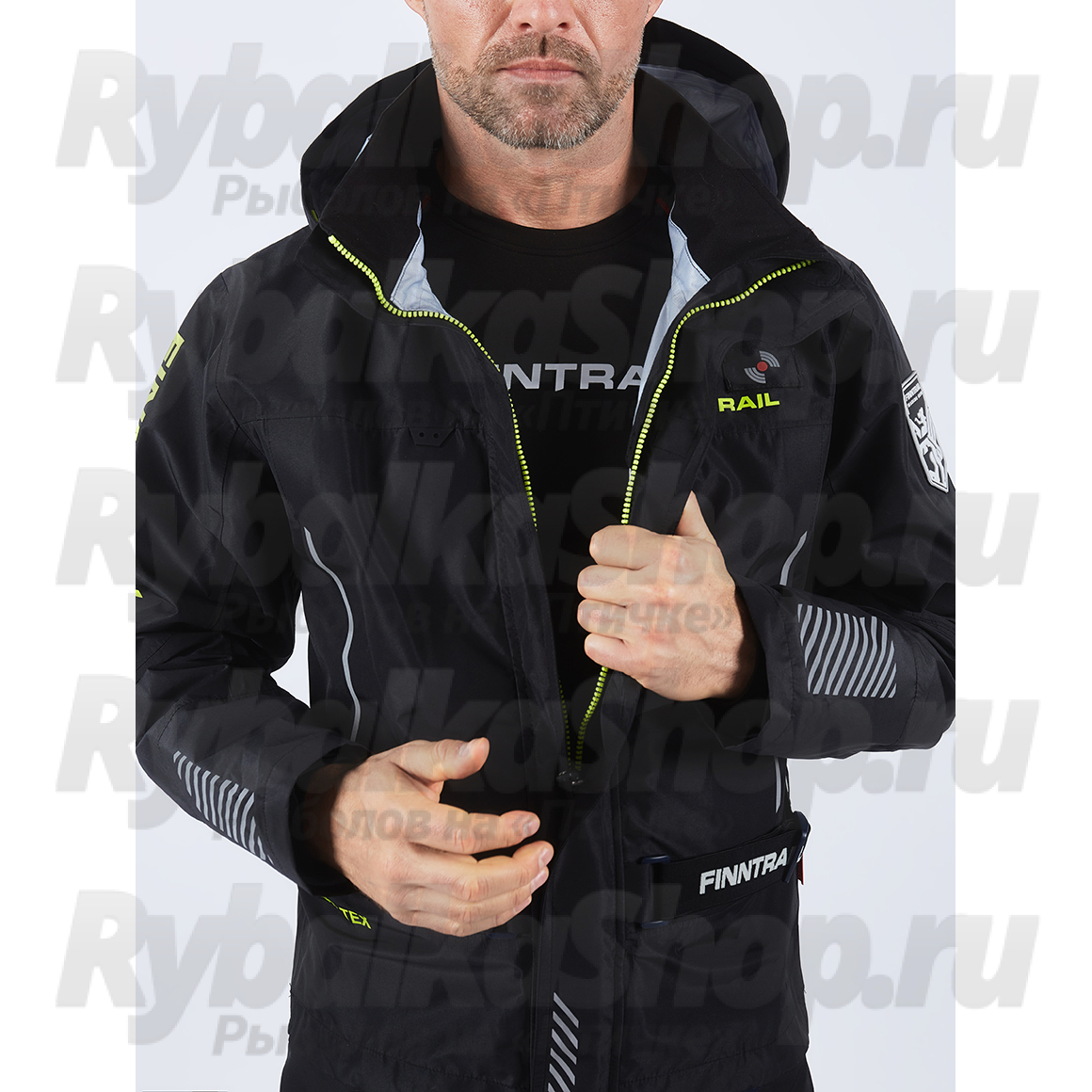 Куртка Finntrail Mudway 2010 Graphite_N имеет комфортный флисовый ворот. Рукава снабжены плотно прилегающими манжетами из прорезиненного материала, препятствующими затеканию воды в рукава. Куртка оснащена интегрированным эластичным ремнём и кулисой внизу для подгонки по фигуре, страховочными кольцами для крепления с чеки, светоотражающими элементами для обеспечения безопасности в темное время суток. Все швы и молнии герметично проклеены.