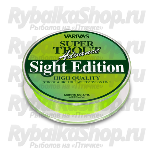 Varivas SUPER TROUT ADVANCE SIGHT EDITION High Quality - новейшее поколение монофильных лесок (Nylon) форелевой серии компании. При разработке этой лески были использованы многие передовые разработки компании. Увеличена прочность лески, ее долговечность и стойкость ко внешним негативным воздействиям.Так же использован специальный способ обработки поверхностного слоя, создающий защитную пленку на поверхности лески. Вместе с тефлоновым покрытием он повышает водоотталкивающие свойства лески, увеличивет дальность заброса, улучшает устойчивость лески к трению и ее долговечность. Леска отмечена маркировкой IGFA (International Game Fish Association — Международная Ассоциация Спортивного Рыболовства), обозначающея, что этой леской установлен официальный рекорд величины пойманной рыбы, признанный Ассоциацией. Специально разработанный цвет повышает комфорт для рыболова в любых условиях, упрощая контроль за приманкой на всех стадиях заброса и проводки.