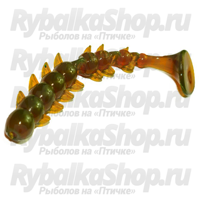 Виброхвост Русская Фишка Сатана имеет сегментированное узкое тело, боковые шипы, тяжелую большую пятку и перемычки, которые позволяют играть ему даже на самых малых весах. Приманка однозначно востребована у наших хищников, а размерный ряд 6, 8, 10 сантиметров позволяет подобрать приманку как для ловли окуня, так и для щуки.