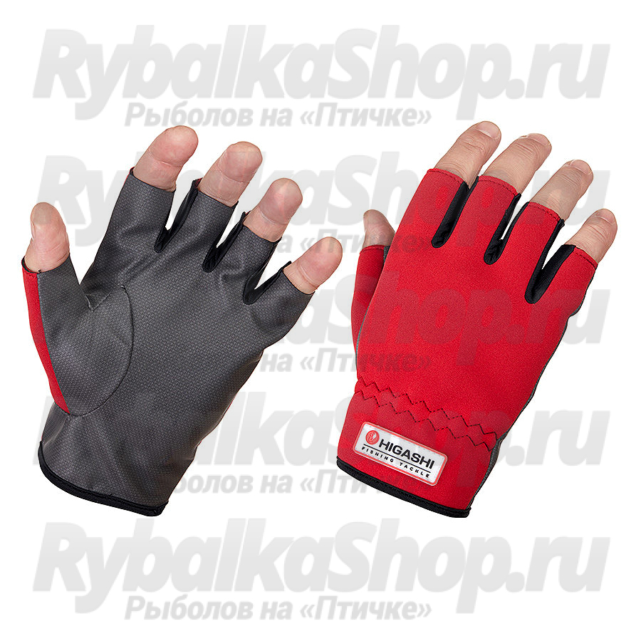 У перчаток Higashi Neo HF лицевая часть изготовлена из неопрена, а ладонь из полиуретана. Модель выполнена с обрезанными пальцами.  Эти перчатки рекомендуются для использования на рыбалках осенью или весной, а также летом на сплавах в холодную и дождливую погоду.