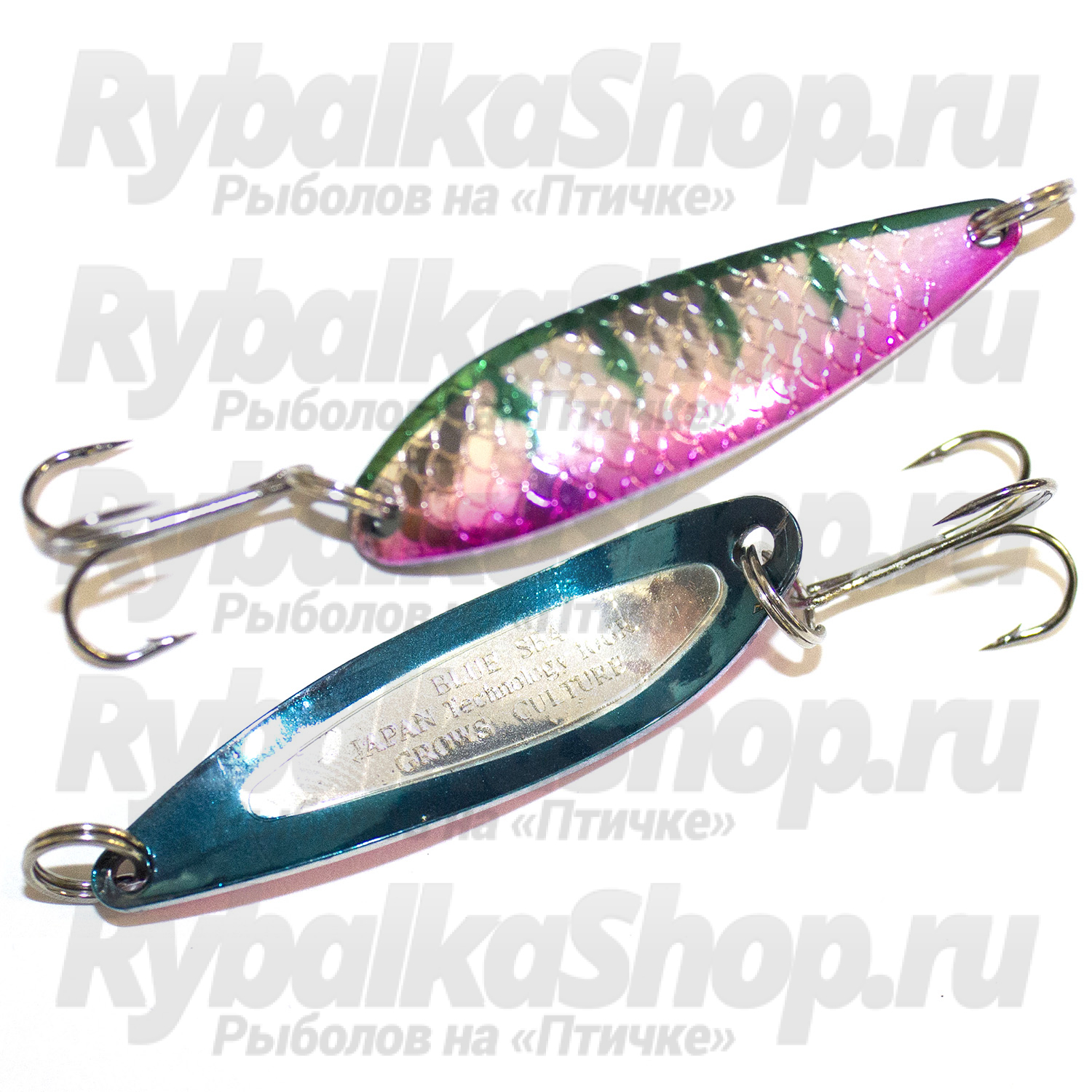 Блесна Blue Sea имеет интересную характерную окраску, рифленая поверхность издает своеобразные шумовые эффекты во время движения блесны, а форма расцветки, во время ловли, создает оптически привлекательные блики, которые способны соблазнить даже сытого хищника. На данный момент блесна Blue Sea доступна в трех размерах. Самый легкий вариант исполнения имеет вес 10г, далее идут 18г и 24г. Цветовых вариаций более девяти. Комбинация размеров и цветов дают возможность подобрать блесну под любые условия ловли.