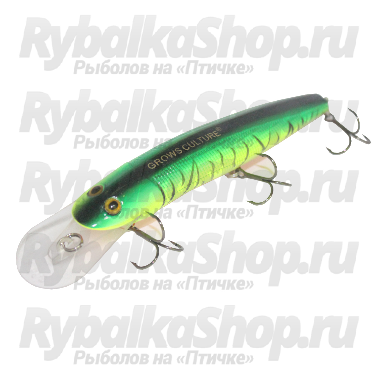 Grows Culture "Халка" 1408 125мм - копия знаменитого Halco Sorcerer 125. Приманка характеризуется особой игрой: корпус приманки колеблется из стороны в сторону во время проводки. Воблеры издают легкий шум и оснащены широкой лопастью, которая гарантирует исключительную прочность при возможных соприкосновениях с подводными препятствиями.