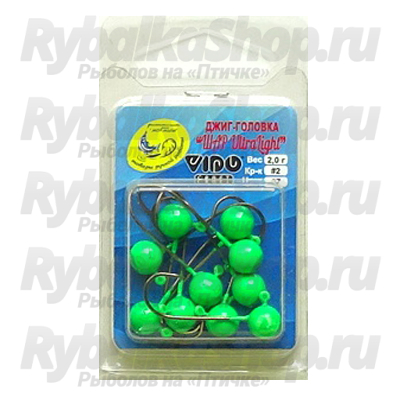 Джиг крашеный "Шар UltraLight" 1,6 гр, цв. 07-зеленый, кр-к VD-072 №4, 10 шт/упак