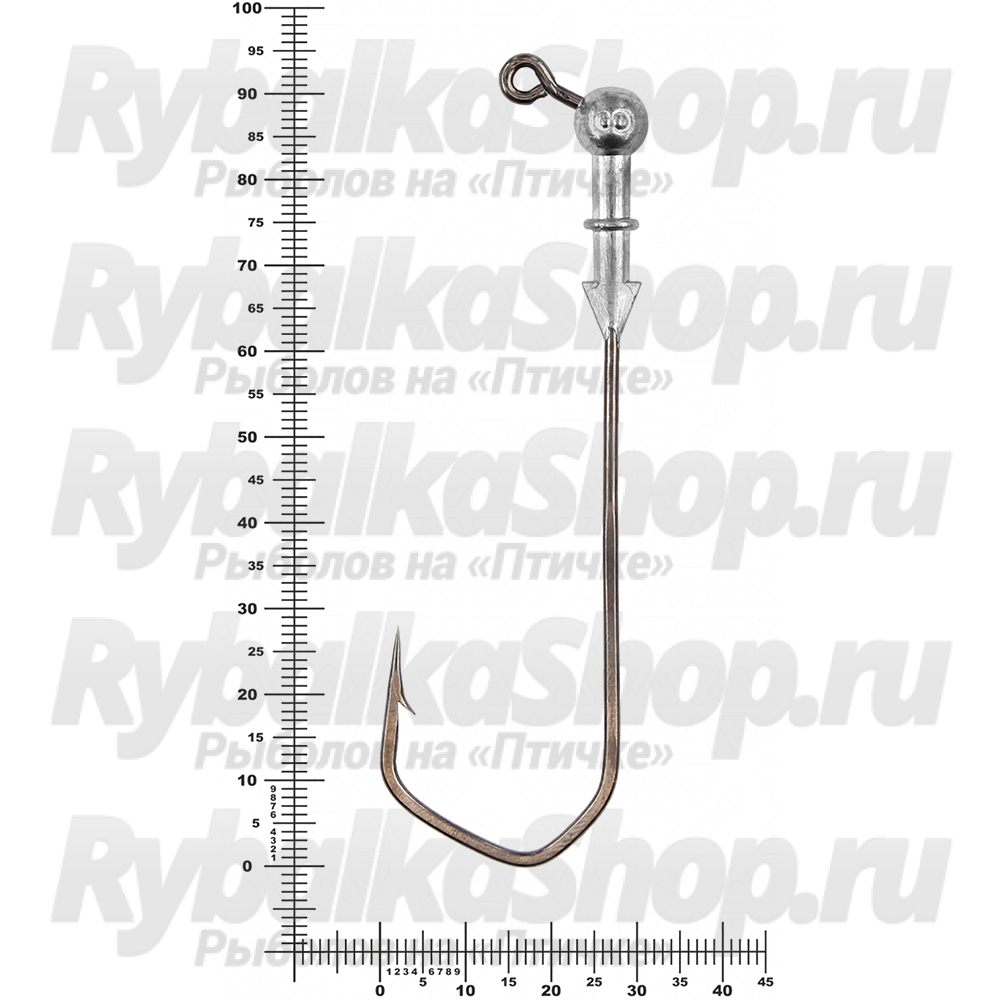 Форма головки – шар, это лучший вариант как для работы приманки, так и для результативности всей ловли, который идеально подходит под все типы силиконовых приманок. Для литья джиг-головки использован крючок №10/0, вес свинцовой части - от 10 до 52 грамм.