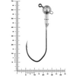 Форма головки – шар, это лучший вариант как для работы приманки, так и для результативности всей ловли, который идеально подходит под все типы силиконовых приманок. Для литья джиг-головки использован крючок №7/0, вес свинцовой части - от 8 до 52 грамм. Маркировка веса: голографический глаз с цифрой внутри. Зеленый цвет - флуоресцентный, т.е. светится под воздействием ультрафиолетового излучения.