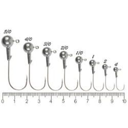 Форма головки – шар, это лучший вариант как для работы приманки, так и для результативности всей ловли, который идеально подходит под все типы силиконовых приманок. Для литья джиг-головки использован крючок №3/0, вес свинцовой части - от 8 до 52 грамм. Маркировка веса: голографический глаз с цифрой внутри. Джиг-головка окрашена в белый цвет люминесцентной краской - люминофор (светонакопительное вещество, которое светится в темноте).