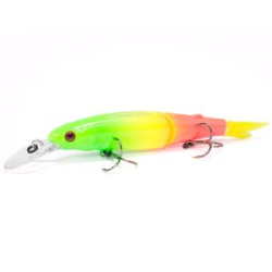Размашистая, дразнящая игра, которая не собьется на течении, дальнобойность и простота в анимации - черты серии приманок Abu Garcia Toby 28. Вытянутый, изогнутый корпус колебалки с двумя плавничками внизу покрыт рифлением, воспроизводящим чешую. Это нужно для внешнего сходства с узкотелой рыбкой. Кроме того, разработчики Abu Garcia продумали конструкцию Toby 28 для вихляющей игры с колебаниями и поворотами. Блесна в воде двигается так же, как и живая рыбка, потому даже самые хитрые хищники с аппетитом набрасываются на приманку. Представленная модель при длине 9 см весит 28 гр. Она поможет обловить обширные акватории на большой глубине в поисках крупной зубастой щуки, судака и сома.