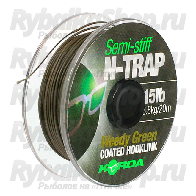 Korda N-Trap Semi-stiff 20м - Полужесткий плетеный поводковый материал Korda с покрытием N-Trap является вторым представителем линейки Korda N-Trap, имеет чуть большую жесткость по сравнению с N-Trap Soft, уже снискавшим широкую популярность. Более жесткое покрытие семи-стифа столь же легко снимается, давая возможность изготавливать превосходные поводки для донной презентации насадки или монтажей поп-ап. Внутренняя жила сплетена из самого надежного и эластичного материала – Dyneema.