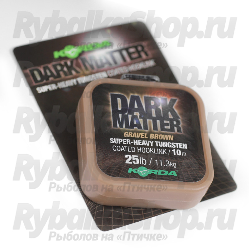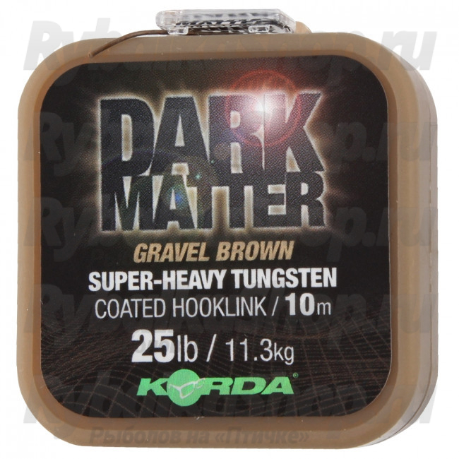 Korda Dark Matter Tungsten Coated Braid Gravel Brown 10м - вольфрамовый поводок с покрытием Dark Matter имеет полужесткую структуру и великолепно подходит для вязания многих современных оснасток. С вольфрамовым наполнением поводок становится тяжелее и быстрее погружается в воде, а также хорошо прижимается ко дну водоема. Антибликовое матовое покрытие помогает поводку слиться с дном.